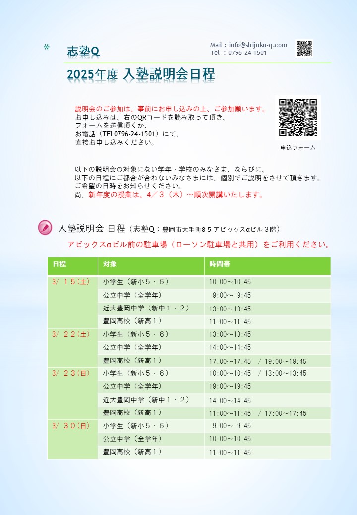 豊岡市/但馬の学習塾「志塾Q」|公式サイト [ 大学受験,高校受験,近中受験,小学生,中学生,高校生,大学生 ]